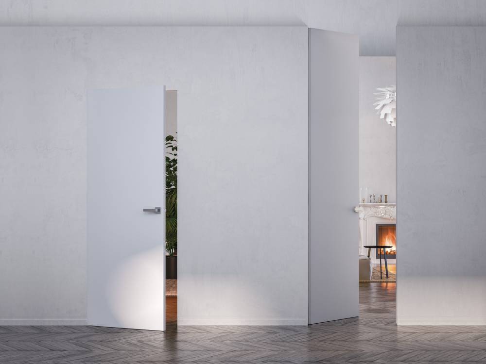 Drzwi ukryte to wysoce estetyczne i bardzo nowoczesne rozwiązanie, umożliwiające montaż drzwi z zawiasami ukrytymi w aluminiowej ościeżnicy. Zamawiając tego typu rozwiązanie w Salonie Drzwi i Podłóg EMA, Klient ma wiele możliwości - drzwi ukryte (albo inaczej: drzwi rozwierane) mogą być malowane w kolorze ściany, przez co zachowany zostanie efekt ciągłości ściany poprzez idealne skomponowanie jej z drzwiami. Drzwi ukryte mogą również zostać pomalowane na wybrany przez Klienta kolor z palety RAL, mogą także zostać ozdobione wykończeniami lub nadrukami wskazanymi przez inwestora lub projektanta.
